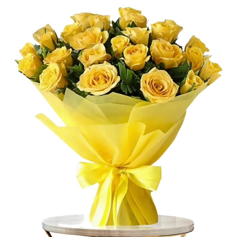 Brighten someone’s day with our vibrant 24-piece Yellow Rose Bouquet, a stunning display of cheerfulness and joy. This beautiful arrangement of yellow roses is perfect for conveying friendship, gratitude, and warm wishes.