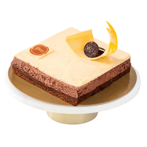 Sugarless and flourless chocolate Kahlua mousse cake with hazelnuts and special chiboust cream.