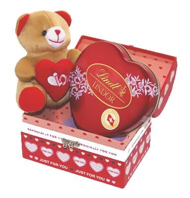 Cute Teddy with Lindt Heart ChocolateCute Teddy with Lindt Heart Chocolate