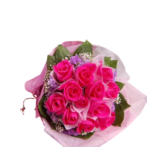 Discover the epitome of grace and elegance with our breathtaking bouquet of 12 Pink Roses, beautifully accented with delicate Purple Statice fillers. Each blush-pink rose, handpicked for its pristine beauty and fragrance, symbolizes love, gratitude, and admiration. The addition of Purple Statice brings a touch of whimsical charm, adding depth and contrast to this stunning arrangement.
