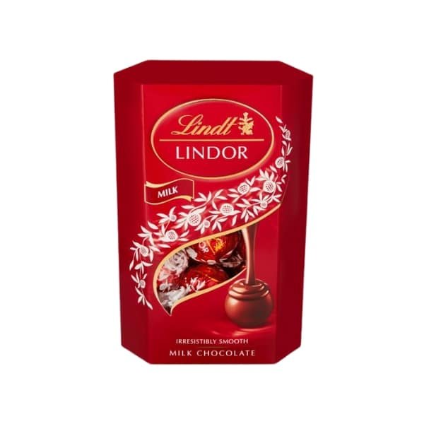 Lindt Lindor Chocolates. Irresistibly smooth milk chocolate truffles with a soft melting centre, all individually wrapped, in red foil. A lovely gift for anyone.