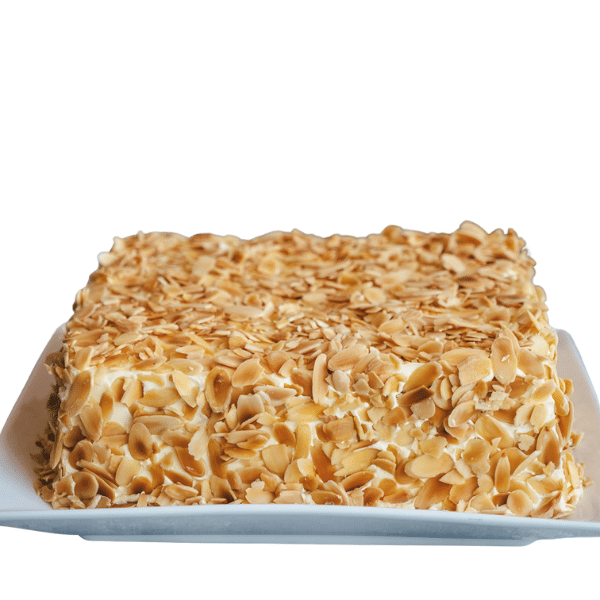 Our well-loved Sans Rival now adorned with Toasted Almonds!