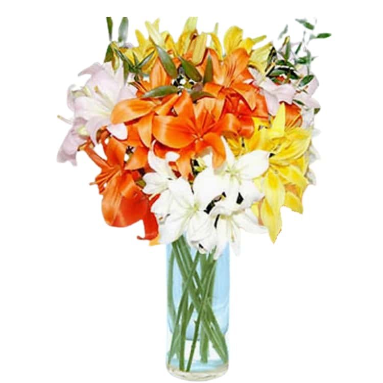 Our ten Mixed Asiatic Lilies are accented with Ruscus and will cause a fervor on any occasion! Colors will vary. Enjoy each bloom as they open at different times.