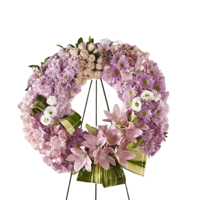 When someone you know is going through a difficult time, our Gift of Warmth Wreath shares your support. An array of pink and lavender blooms in a classic shape is thoughtfully crafted by a local florist to express your sympathy.