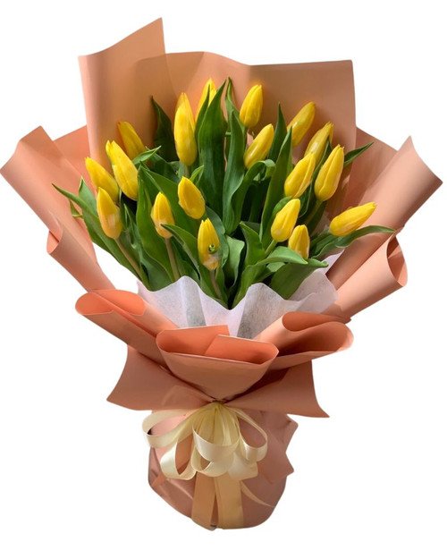 Yellow Tulip Bouquet of 15 pcs bright tulips make a delightful arrangement.